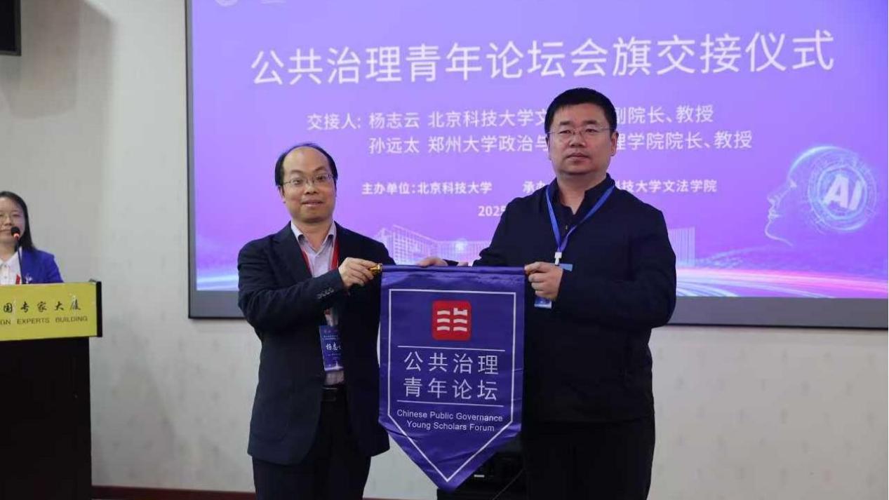 闭幕式暨会旗交接仪式上,南京大学政府管理皇冠博彩app 张乾友教授作总结。学校皇冠博彩app 副院长杨志云教授同第24届论坛承办方郑州大学政治与公共管理皇冠博彩app 院长孙远太教授进行了会旗交接。